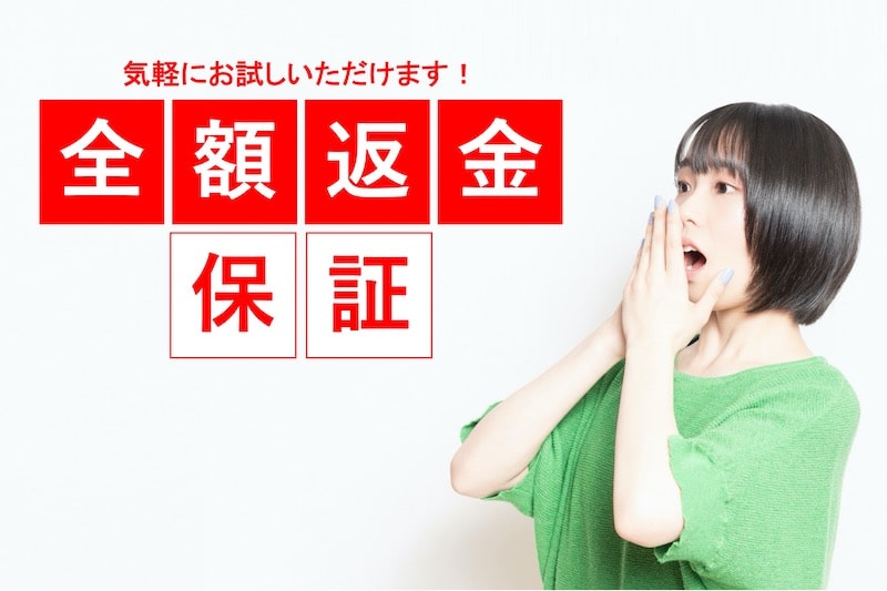 いただければ、一切の理由を問わず、お支払い頂いた費用を全額ご指定口座へ返金いたします。これが当社からの『安心保証』であり『品質保証』です。本サービス利用におけるリスクは一切ございません。安心して本サービスをお試しください!