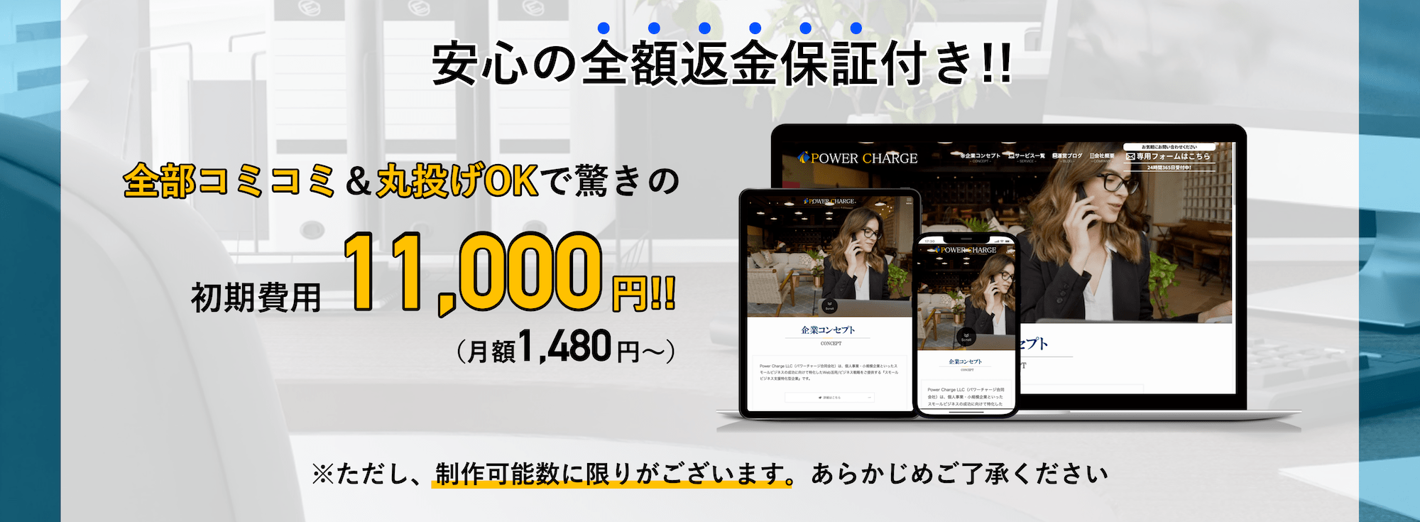 初期費用11,000円、月額1,480円〜 という価格帯は、業界でも非常に低価格水準と言えるでしょう…。にも関わらず、そのクオリティはお客様に「えっ、こんな素敵なホームページが出来上がるとは!」と言われるほど。低価格なのに素敵なホームページが手に入る…だからこそ、多くのお客様にご満足いただけています!
